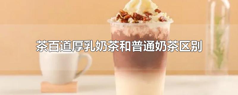 茶百道厚乳奶茶和普通奶茶区别:茶百道厚乳奶茶是由雀巢全脂牛奶、爱护牌咖啡用浓缩植脂奶油、雀巢全脂加糖炼乳混合而成,属于高甜度物质。普通奶茶是牛奶和红茶的混合饮品,糖分不如茶百道厚乳奶茶。