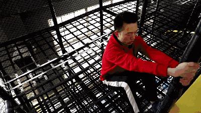 【粘粘乐】无论是大人还是小孩,都能在这里开心蹦跶~你只要身穿带有魔术贴的衣服,在蹦床上用力往墙上蹦,就可以像蜘蛛一样粘在墙上了~