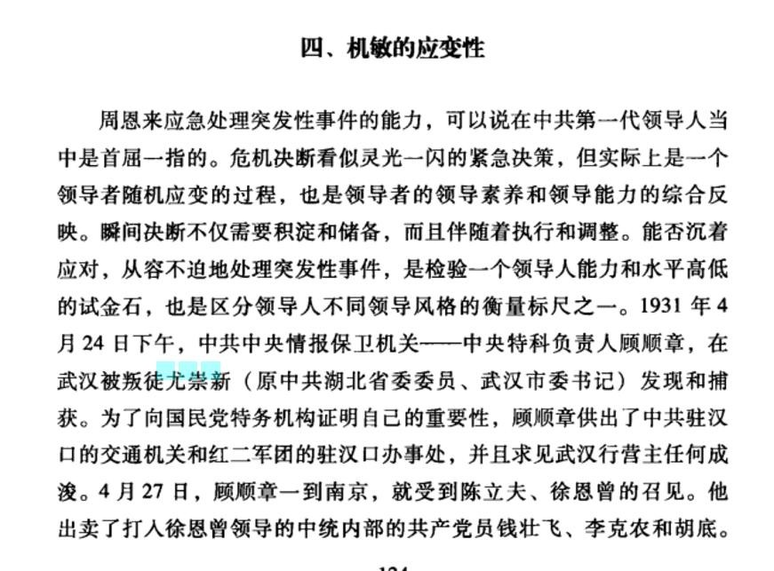 机敏的应变性来自 王乐平著. 领袖风格的练就 中央苏区时期毛泽东、周恩来、朱德、彭德怀的领导风格研究[M]. 2012