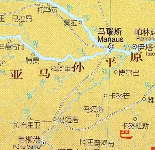 马瑙斯是位于巴西亚马逊雨林深处的城市,坐落在南纬三度,赤道附近。这里有一个独特的自然现象:亚马逊河与内格罗河的交汇处。亚马逊河,也被称为白河,以其丰富的动物种类而闻名,包括食人鱼等。而内格罗河,又称黑河,由于pH值异常,不太适合动物生存。