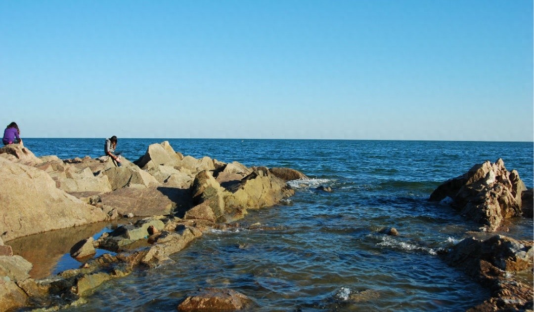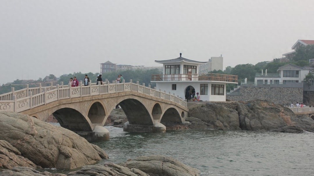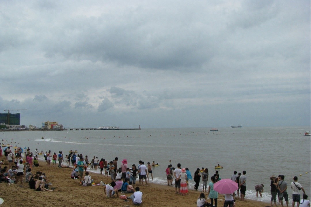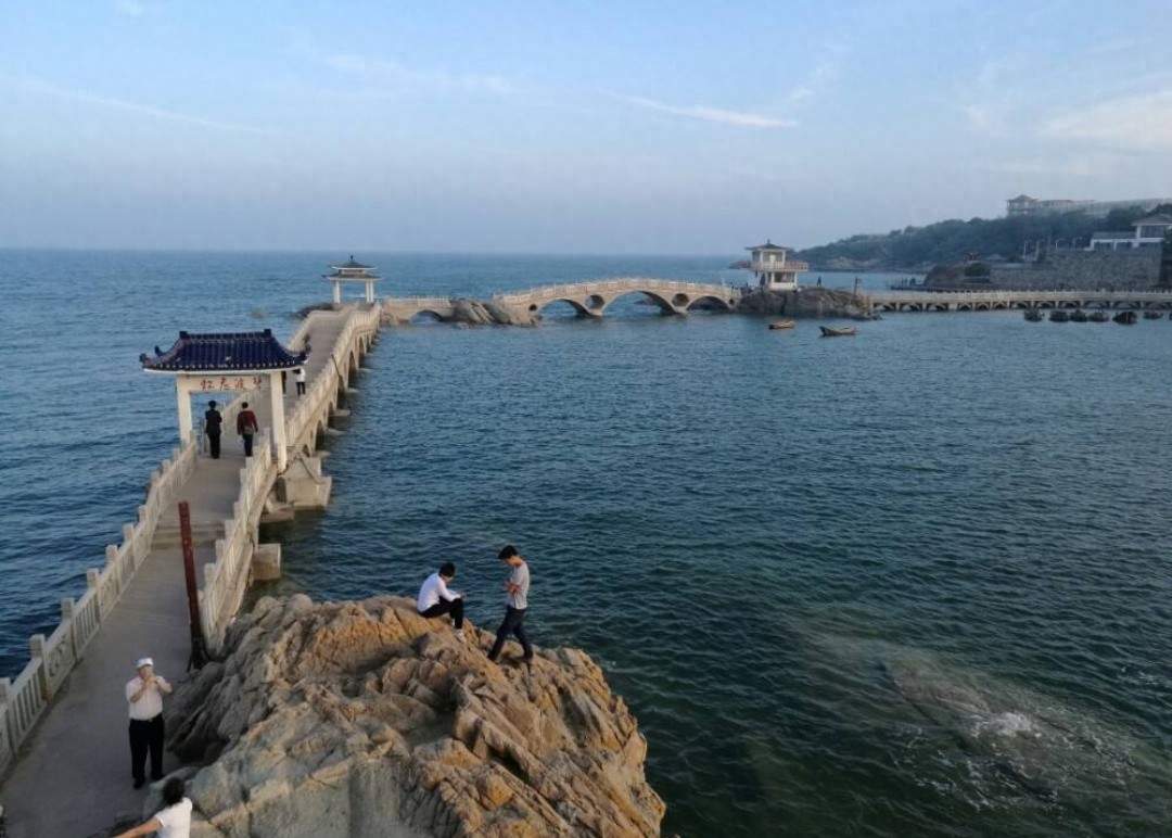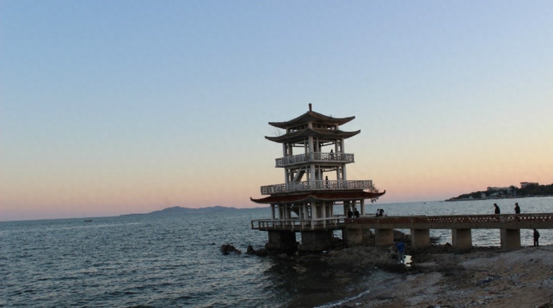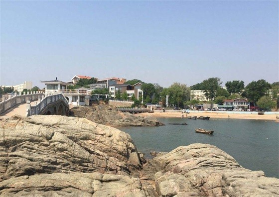 海滩的北部是游船码头,这里可以乘船去菊花岛,约40分钟船程。海滩南端有名胜景观“三礁揽胜”,在三座盘踞海中的礁石上,各建有一座造型幽雅的观海亭——水上长亭,各亭之间有栈桥相连,可登亭观潮听浪,或者早晨来看日出,也有人在此静心垂钓,十分惬意。如果赶上落潮,里侧的海水退却后海滩半隐半露,还可拾贝、捉蟹,乐趣横生。