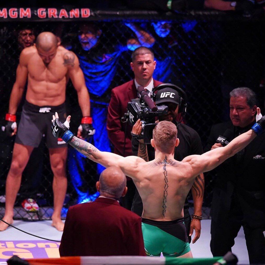 这场跨界大战也是筹备已久,当时嘴炮康纳还不是UFC羽量级的冠军,当时的冠军是羽量级王者何塞奥尔多,而梅威瑟已是世界最顶级的拳王,如果嘴炮康纳想要同梅威瑟一战,必须要有足够的资本,于是嘴炮在用时13秒的情况下KO了当时羽量级的最强王者何塞奥尔多,之后转战轻量级两回合KO轻量级冠军阿尔瓦瑞兹,康纳成为了新任UFC轻量级冠军,同时也成为了UFC历史上首位双量级冠军。