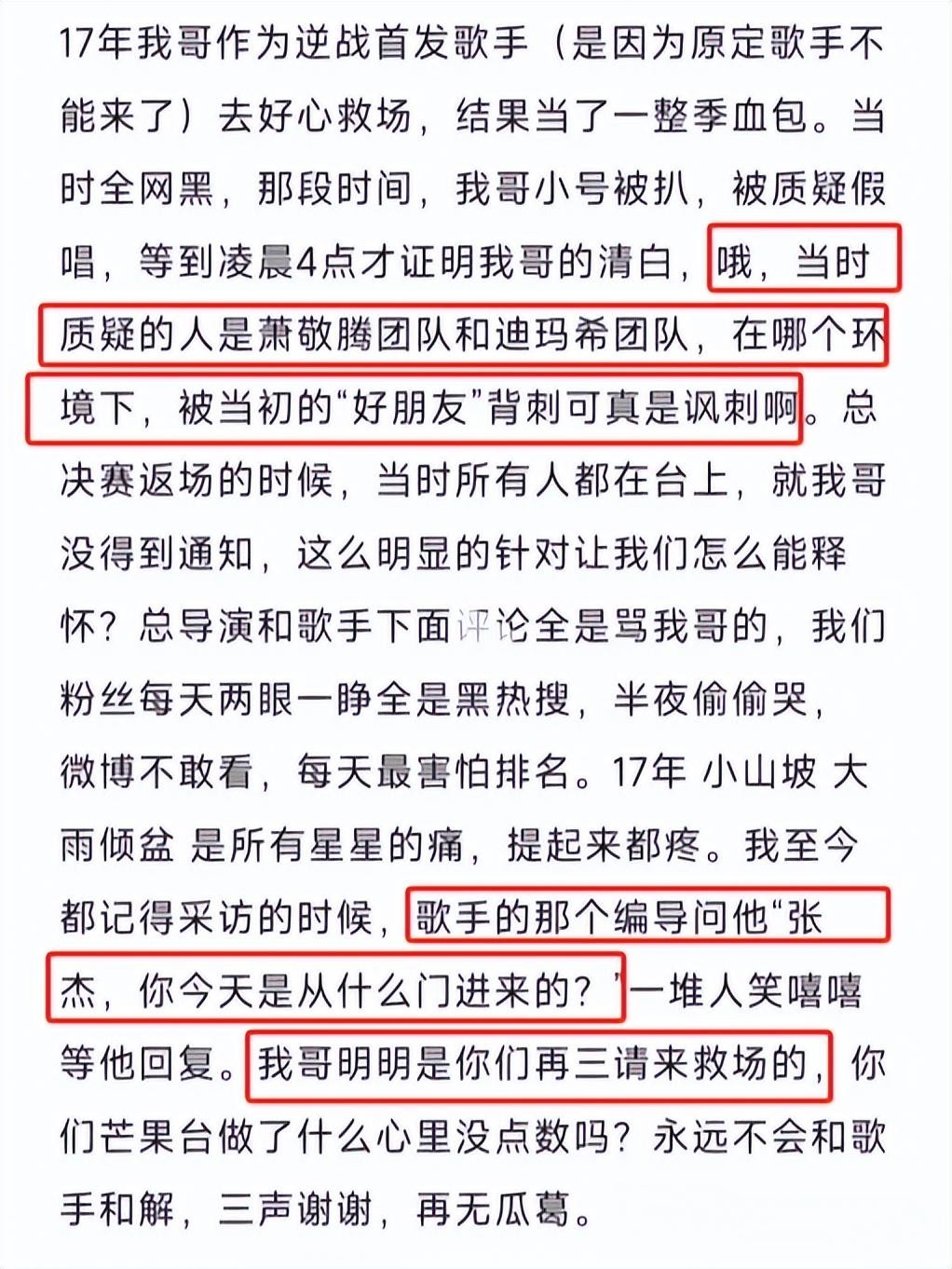 这着实让张杰感到不可理喻和背叛。毕竟在那个舞台上,他们可是同行,理应互帮互助,而不是互相算计。