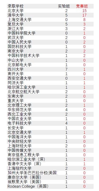 尽管实验班的成绩已经很亮眼了,但从北大、清华的录取人看,竞赛班还是要绝对碾压实验班的(见文后对比图)。