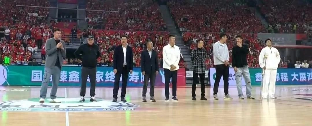 仪式上,广东篮球的众多传奇人物,如张勇军、李春江、李群、王仕鹏、陈江华、苏伟、周鹏和赵睿等,纷纷到场,他们的出现让现场的氛围更加庄重而温馨。广东男篮的总经理朱芳雨,代表球队向这些上台的名宿们一一赠送了礼物,以表达对他们过往贡献的敬意。#易建联球衣退役#