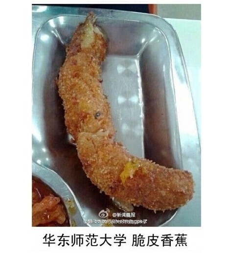 “脆皮香蕉”这道新菜在华东师范大学的华闵食堂一推出,就引发小伙伴们阵阵惊呼!听说,有同学取名为“屌炸天”。不知道大厨们做这道菜的时候,究竟在想神马?