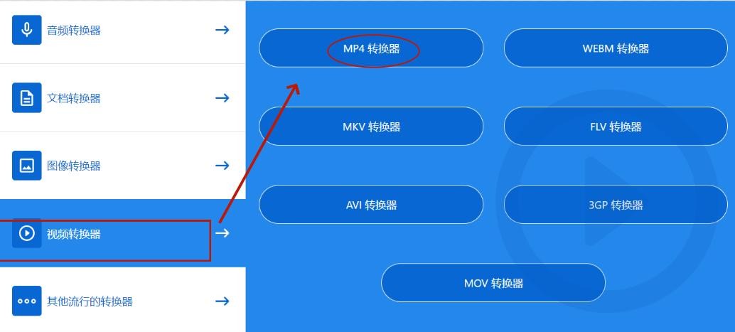步骤1,在浏览器中搜索zamzar并打开,选择“MP4转换器”。