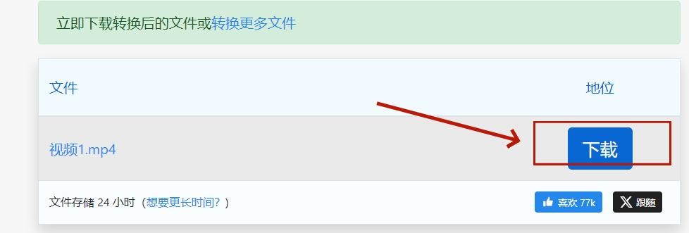 步骤3,当文件转换成功后,点击蓝色图标“下载”即可。