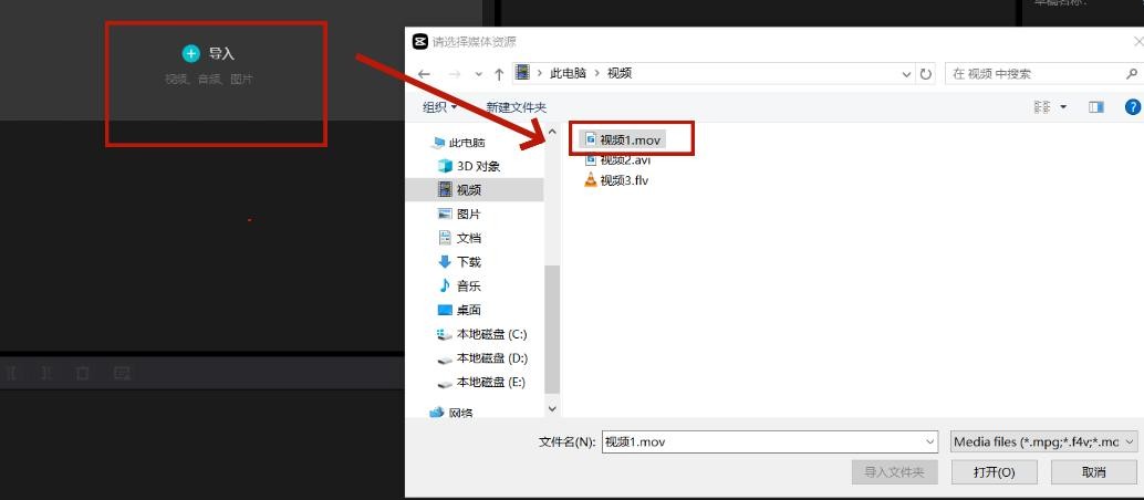 步骤2,导入需要修改格式的视频文件。
