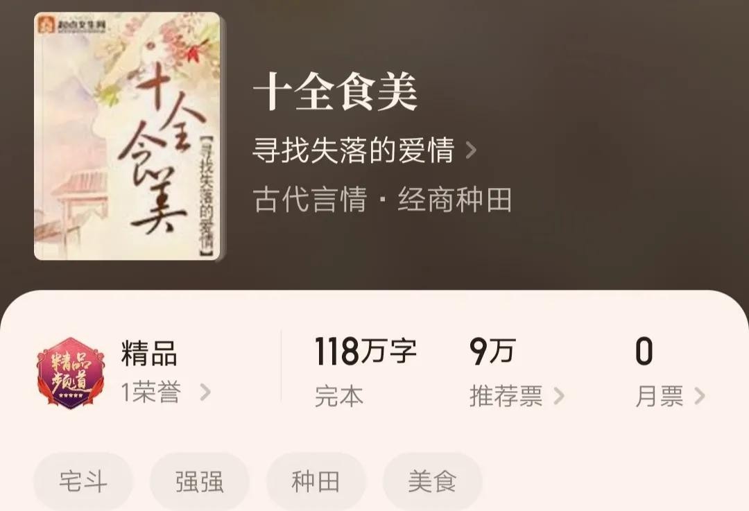 4.《十全食美》,作者寻找失落的爱情,全文字数118.11万