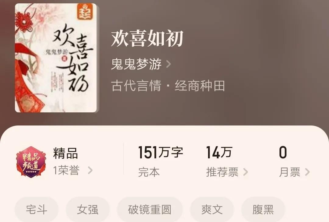 1.《欢喜如初》,作者鬼鬼梦游,全文字数150.97万