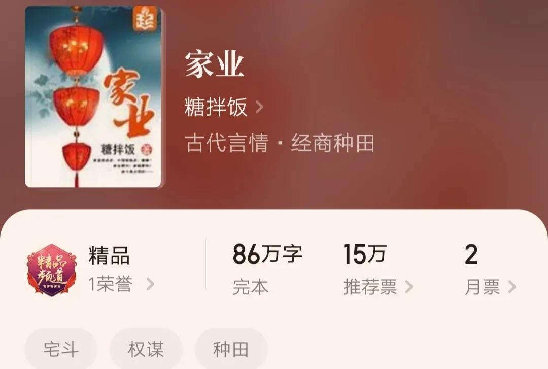 7.《家业》,作者糖拌饭,全文字数85.74万