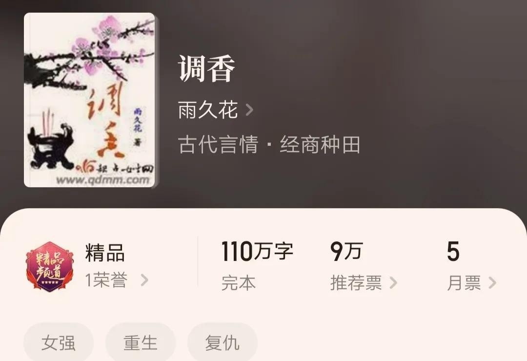 8.《调香》,作者雨久花,全文字数110.32万