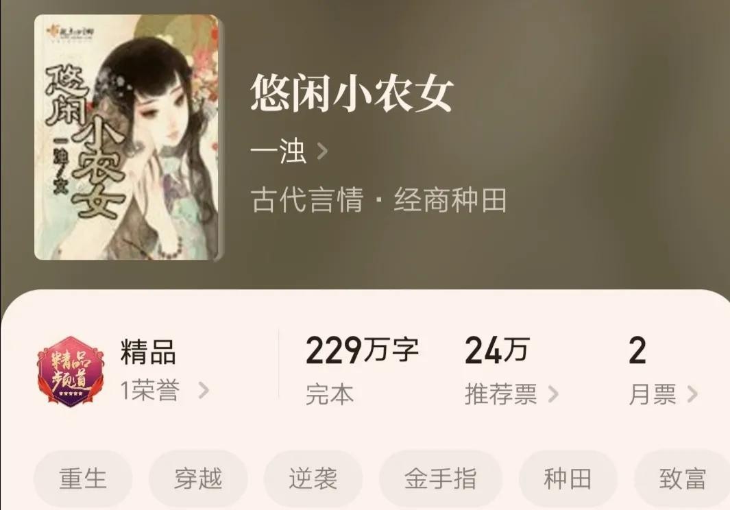 5.《悠闲小农女》,作者一浊,全文字数228.85万