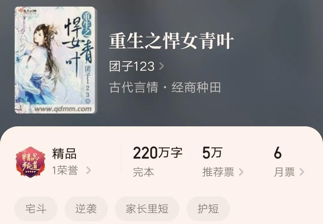 10.《重生之悍女青叶》,作者团子123,全文字数219.69