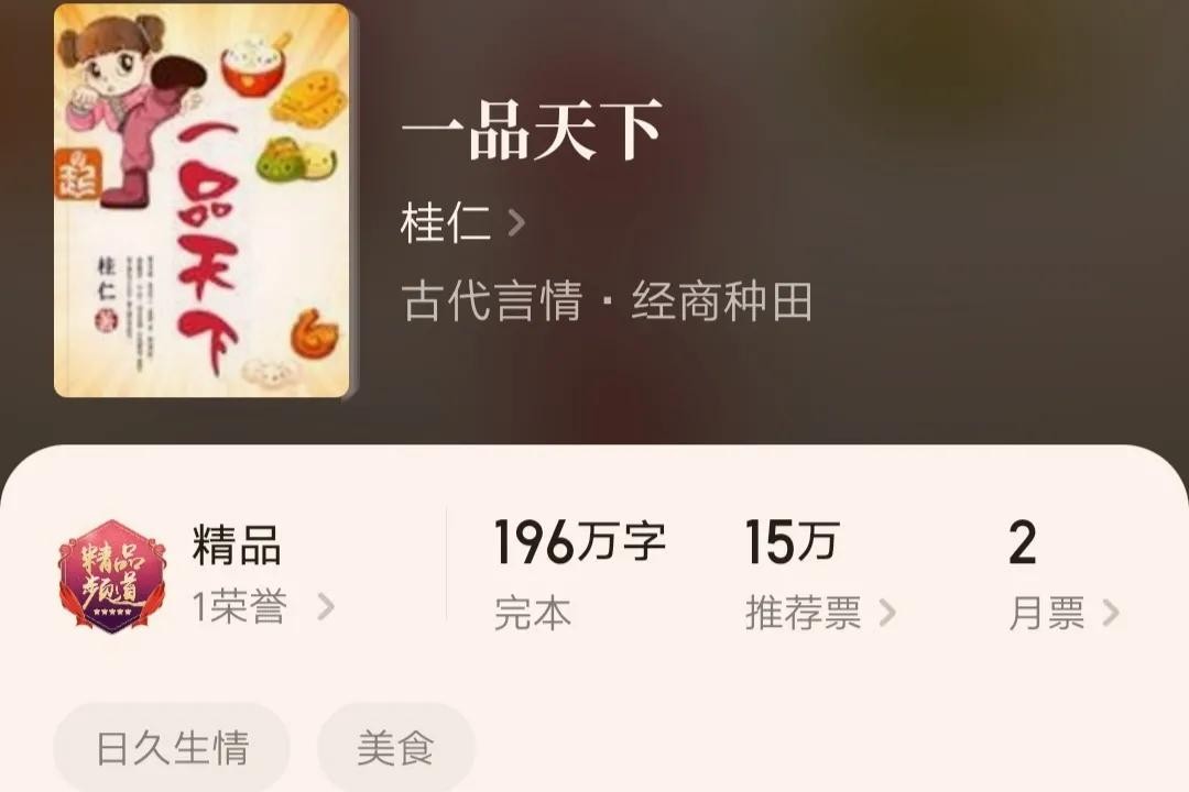 3.《一品天下》,作者桂仁,全文字数195.54万