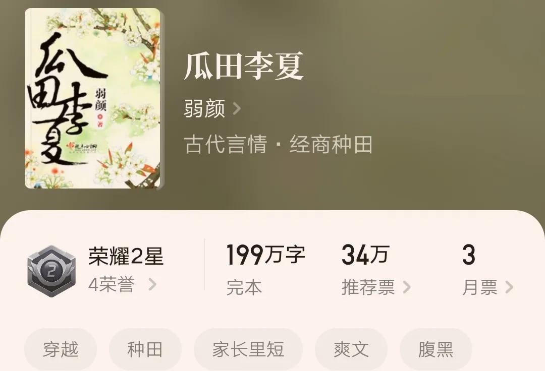 6.《瓜田李夏》,作者弱颜,全文字数199.38万