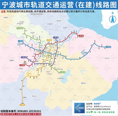 宁波地铁线路图,宁波轨道交通运营(在建)线路图