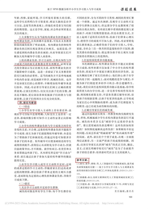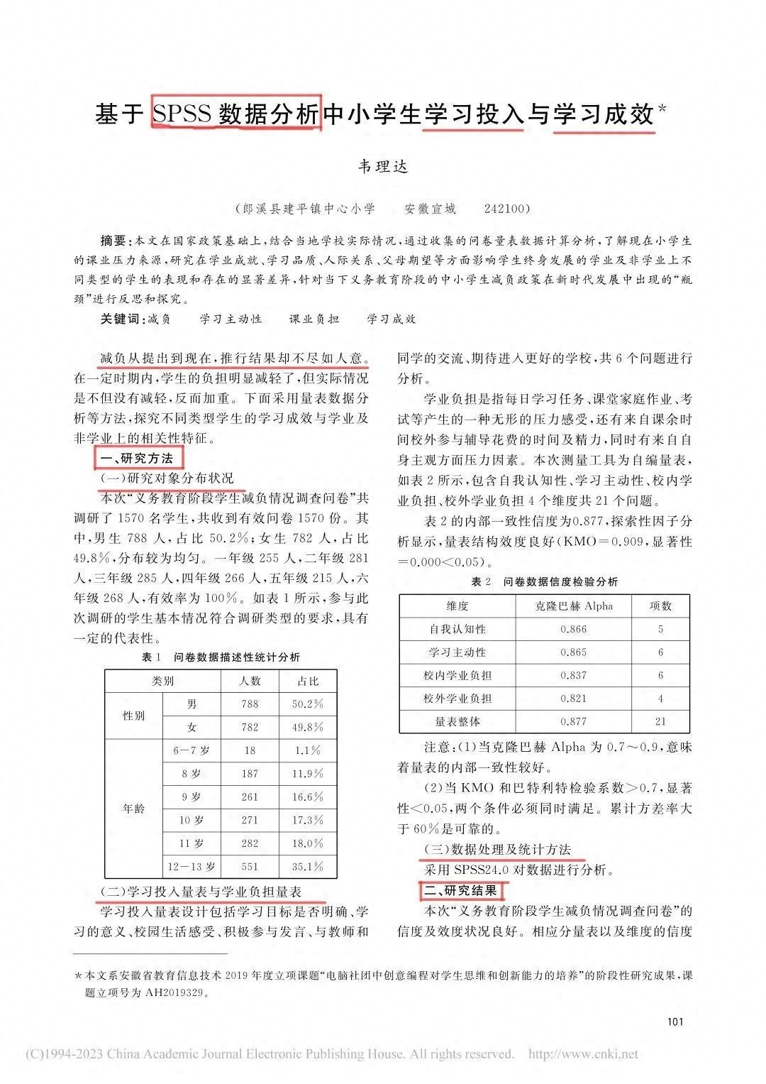 今天我们要聊的就是一个实用的案例,论文的标题是《基于SPSS数据分析中小学生学习投入与学习成效》。