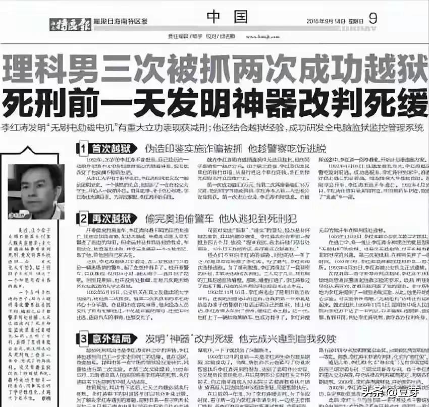 他被称为中国“越狱之王”,三次被抓,三次越狱,也是中国最牛死刑犯,在被执行前20小时,发明一项专利,打破了困扰我国多年的技术壁垒,从死刑改为死缓,后又靠多项发明,一直减到14年,他就是李洪涛。