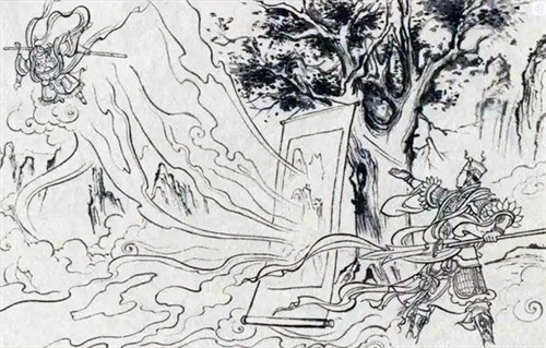 杨戬大喜,依计行事。他将山河社稷图悬于一棵大树上,再上梅山来战袁洪。二人战在一处,战不几合,杨戬转身就走,袁洪随后赶来。杨戬下了梅山,忽见前面一座高山,杨戬径上了山,袁洪随后也赶上山来,他岂知此山乃山河社稷图变化而成的。袁洪赶上山来,便进了圈套,再也不能下山。
