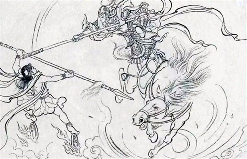 两军列阵对垒,袁洪银盔素铠,座下白马,使一条镔铁棍,英雄凛凛。常昊杀了右伯侯姚庶良,吴龙杀了兖州伯彭祖寿。#哪吒#两次祭起九龙神火罩,欲烧死吴龙和常昊,均被二人逃脱。袁洪纵马冲杀过来,杨任急催云霞兽,使开飞电枪,抵住袁洪。战有五七回合,杨任取出五火扇,照着袁洪一搧,袁洪早已逃走,仅烧死了他的一匹马。