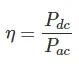 整流电路效率 (η) 是输出直流功率与输入交流功率之比。效率的公式等于: