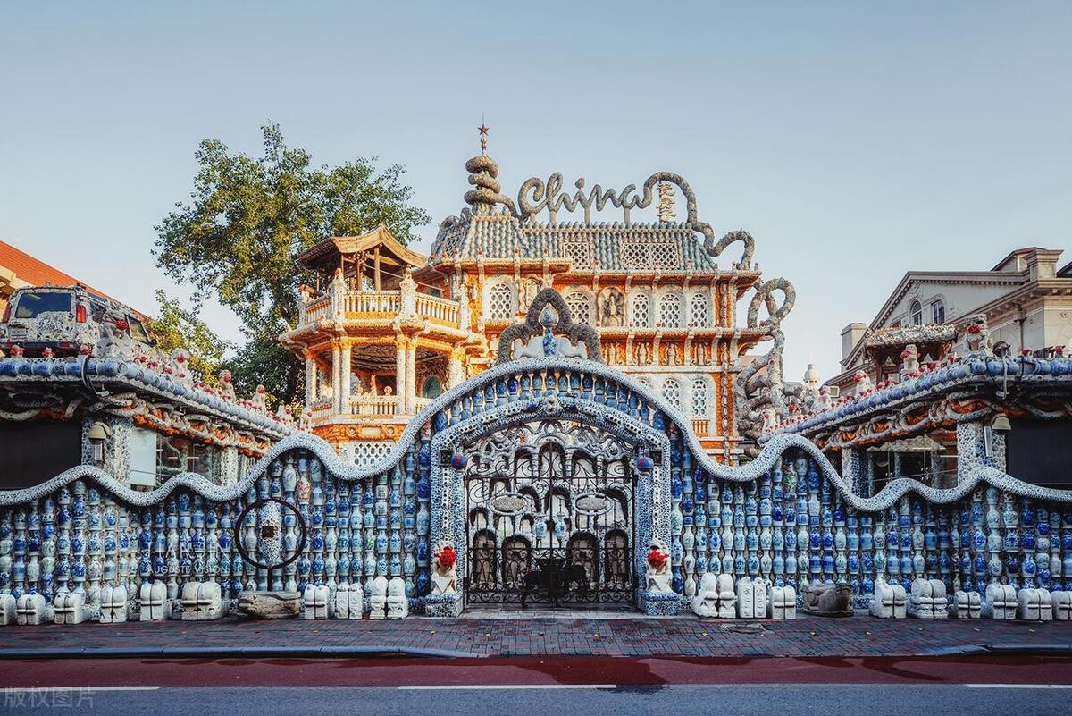 这座由古瓷器、琉璃、水晶、玛瑙等各种材料装饰而成的建筑,充满了艺术感和历史感。大家可以在这里欣赏到独特的建筑风格,感受传统文化的魅力。