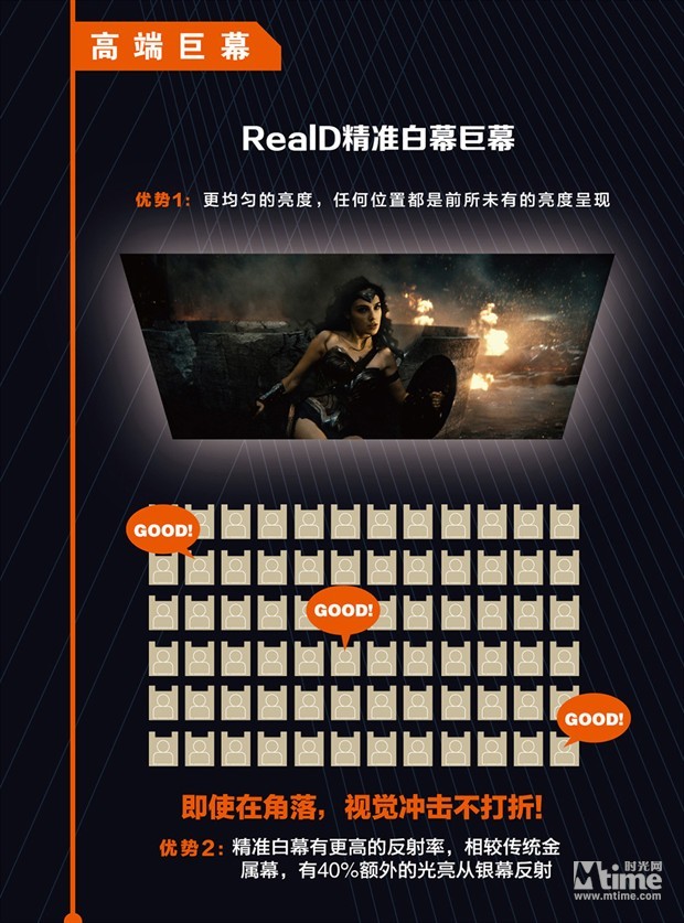 在所有RealD 6FL认证影厅和LUXE影厅中,还标配有高端的RealD 3D眼镜,镜片厚度较一般眼镜更厚,约0.7mm,因此更耐磨和耐擦拭,普通眼镜擦5-10次基本就不能用了,而高端版眼镜可以擦拭多达100次。