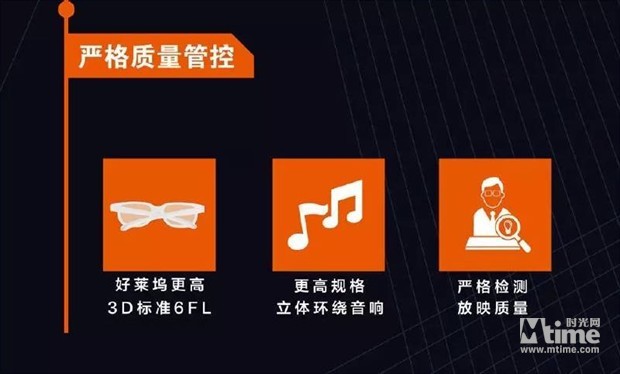 LUXE对银幕的宽度、放映亮度与声音都有明确的要求:银幕宽度不少于16米;2D亮度必须至少达到14FL(FL为亮度单位), 3D亮度至少达到6FL,观众在观看3D电影时,也不会产生视疲劳;声音的最低要求是7.1或更高规格的立体音响系统,而北京红星太平洋影城的LUXE巨幕厅配备的是13.1声道的DTSX临境音技术。