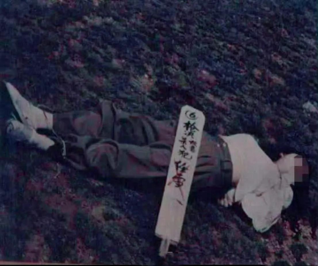 但仔细一看就会发现,在她的背后树立着一块木板,木板上写着“枪决杀人犯”几个大字。