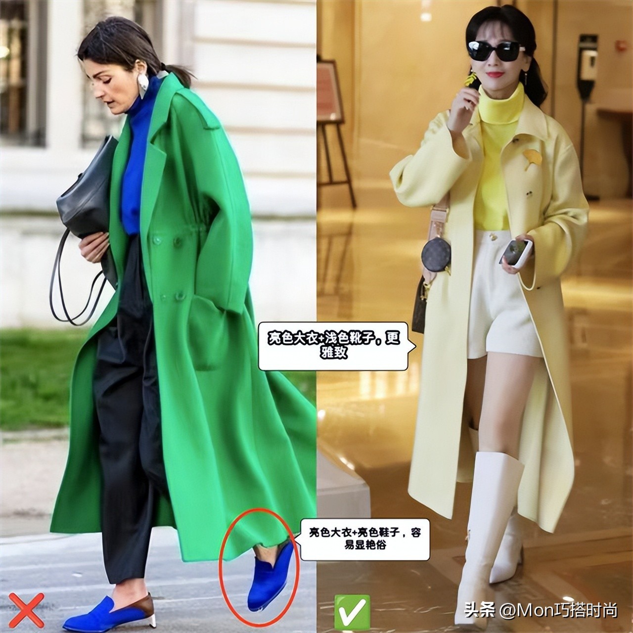 (规律二)大衣颜色越亮,鞋子颜色越要基础