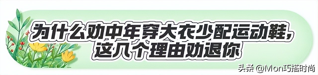 运动鞋看似青春活泼,但长相成熟、气质稳重的中年女性穿了,反而会放大身上的年龄感,再配上优雅的大衣,不仅风格违和,还会让人看起来像在刻意装嫩扮可爱!