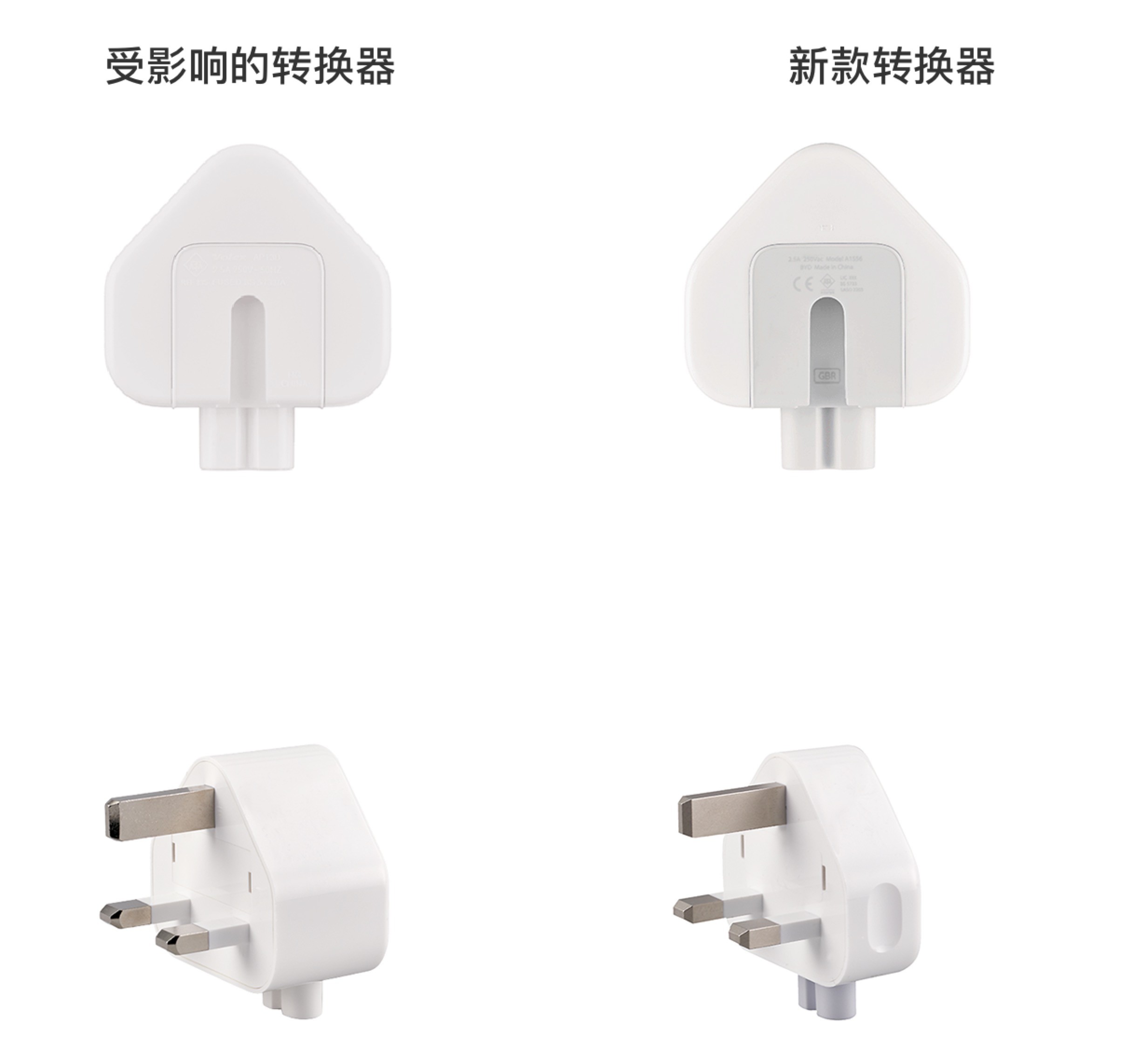 受影响转换器与新款转换器对比。图片来自苹果官网。