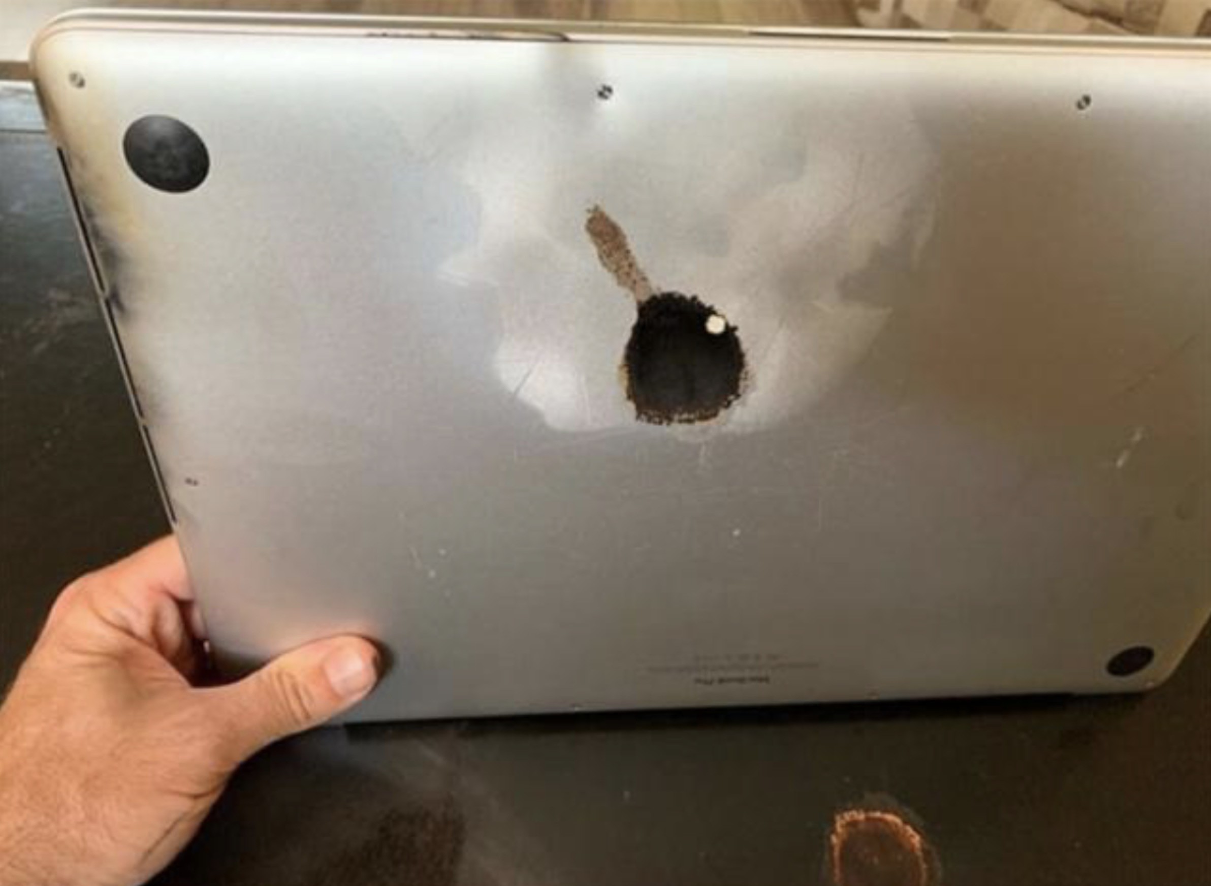 史蒂夫·加涅(Steve Gagne)的MacBook Pro爆炸。图片来自社交媒体。