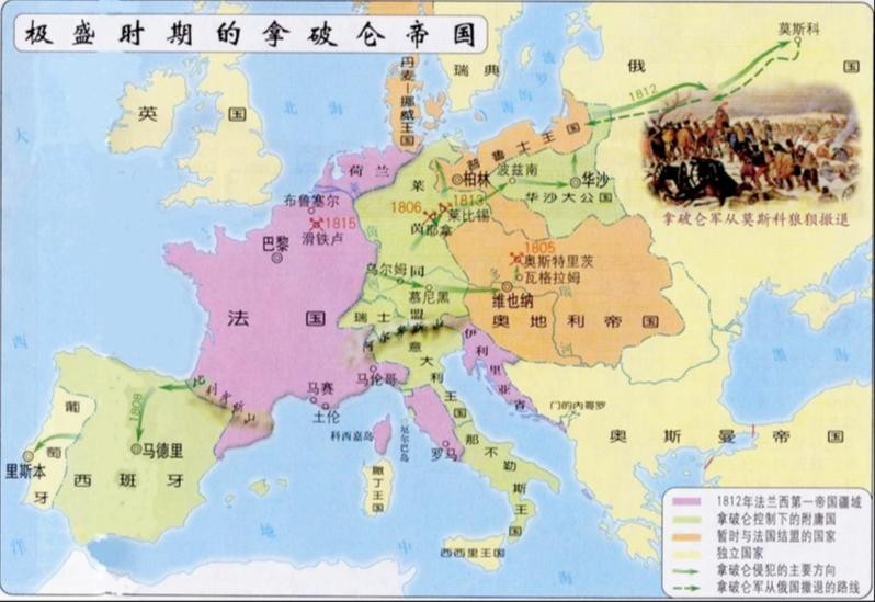 然而就是这样一位海岛上走出的少年,成为了法国最伟大君主之一,拿破仑在法国执政期间多次对外扩张,发动了全面战争,整个欧洲都拜伏在他的高靴之下,在他最辉煌的时候,兼任意大利国王、莱茵邦联的保护者、瑞士联邦的仲裁者、法兰西第一帝国统治者。确定了欧洲霸主地位,为了在文化上巩固帝国的统治地位,拿破仑颁布法典,规定教育,军事,法律等几乎所有领域都要使用法语。
