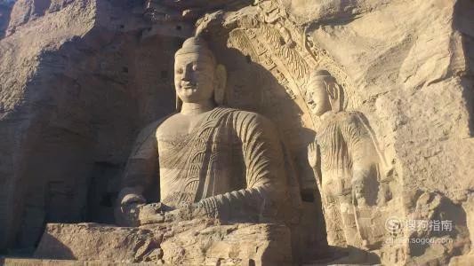 2、云冈石窟。世界文化遗产,造像气魄雄伟、内容丰富多彩 。