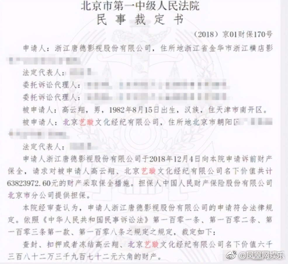 应该是考虑到高云翔无法翻身,《阿那亚恋情》很可能搁浅,2018年12月,唐德影视就以《阿那亚恋情》搁浅为由,申请冻结高云翔及北京艺璇经纪有限公司名下6382万元财产,并被法院判决生效。唐德影视此举显然是为后续打官司争取赔款做准备。