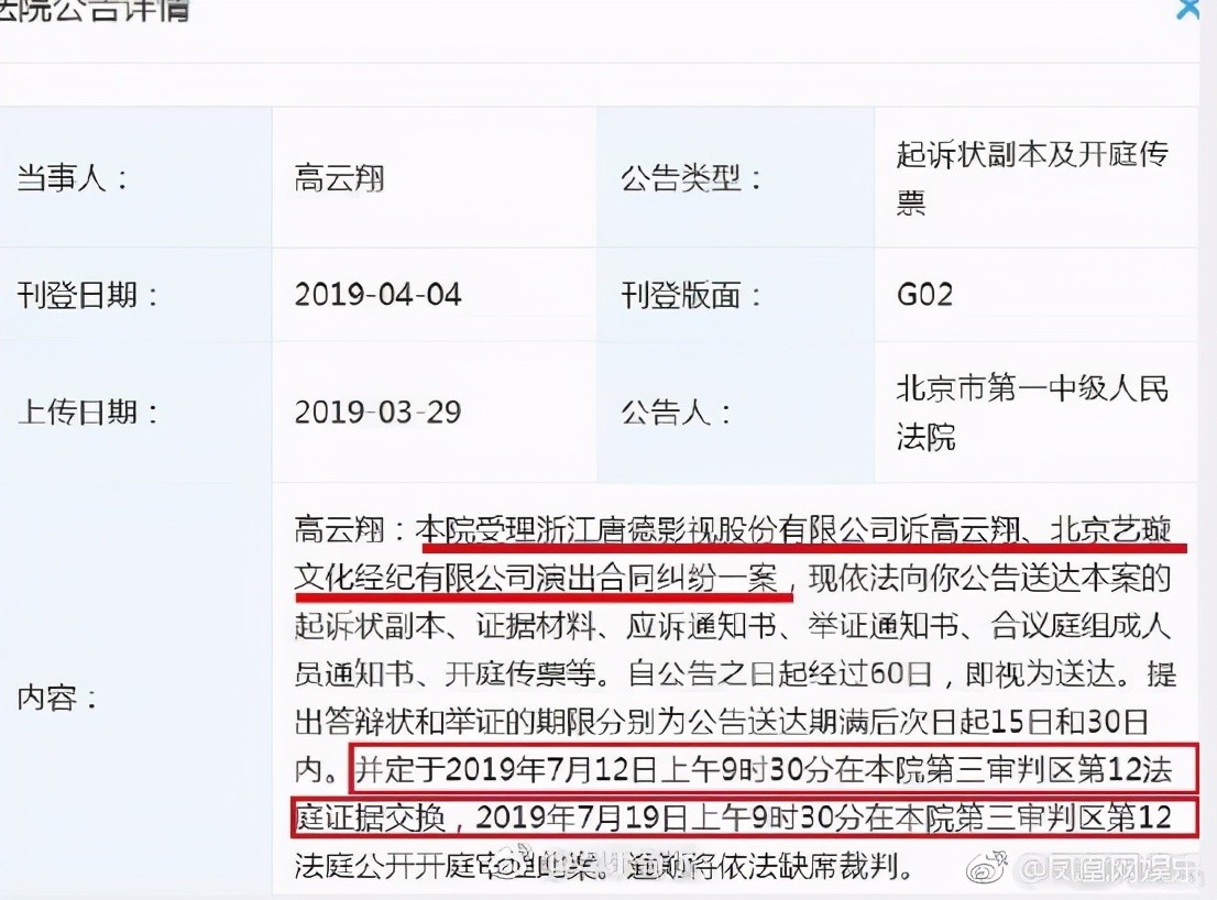 接着到2019年3月底,《阿那亚恋情》出品方唐德影视起诉,起诉内容为演出合同纠纷。显然指的就是《阿那亚恋情》,而从之前冻结超过6000万财产来看,赔款额应该非常巨大。