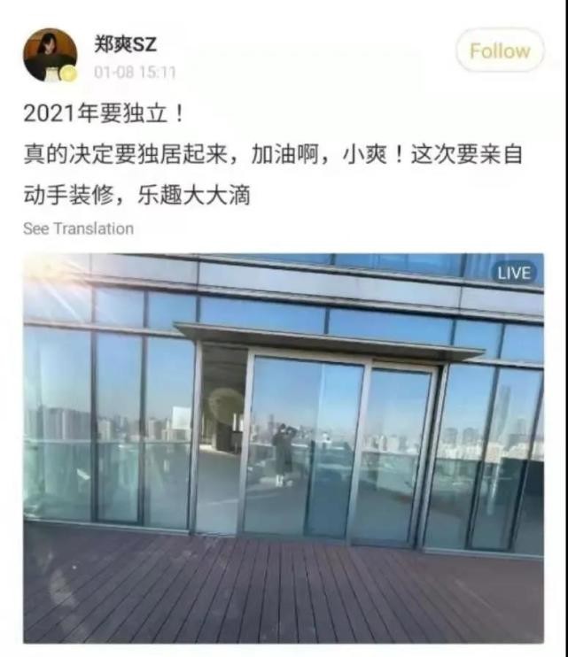 先来说一下郑爽位于上海的豪宅,当时她在社交平台发了一张站在超大露台上拍的照片,还发文表示要亲自动手装修。