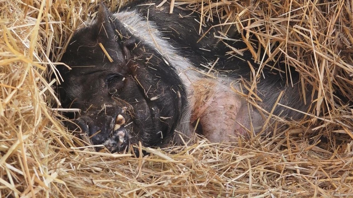 这头猪名叫“哼哼”,在2022年时已经24岁了,24岁的猪是什么概念的呢?就相当于人类的120岁!
