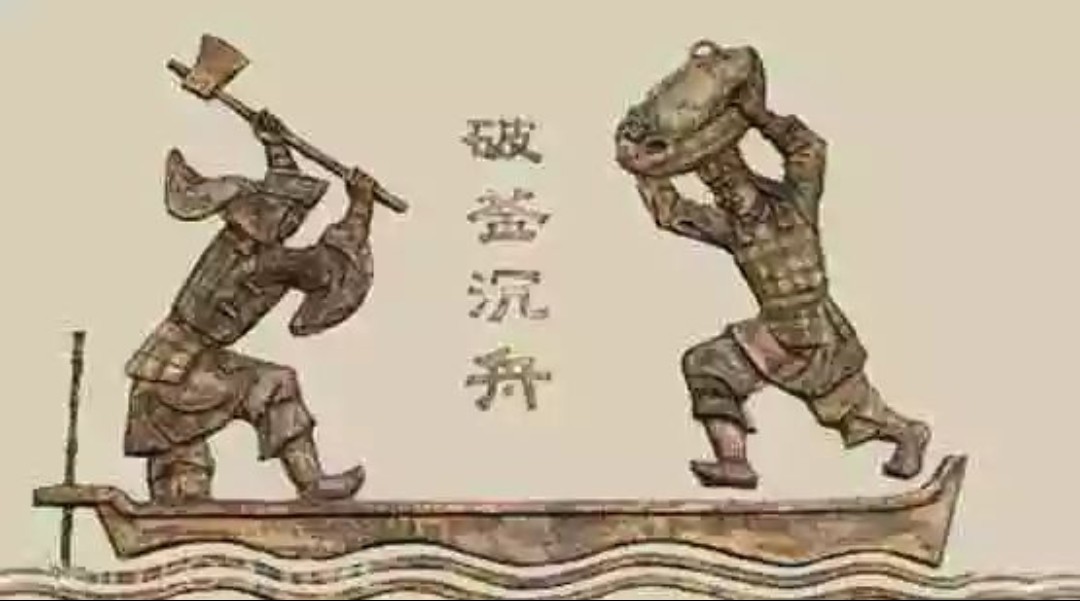 下面要做的就是救赵,项羽的做法,给历史留下了一个成语,“破釜沉舟”破釜是当时行军打仗的行军锅,把锅砸了,沉舟就是渡河的船沉了,项羽夺了兵权,先派英布(黥布)和蒲将军带领两万人度河,先和秦军打了一仗