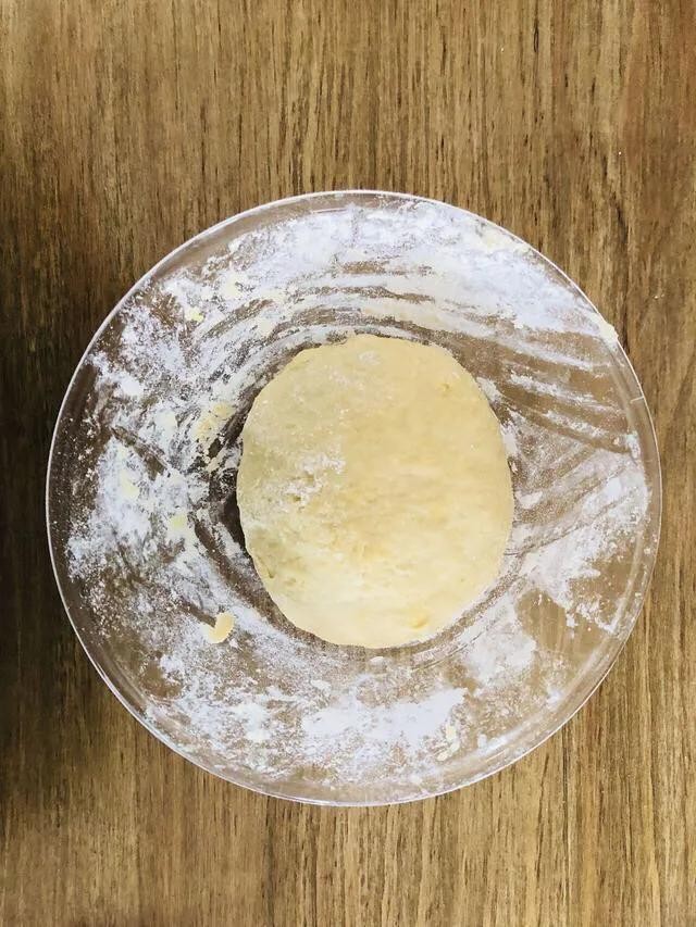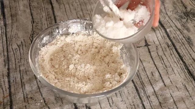 3.用取3.5公斤面粉,用550~650克热油烫成酥面备用。