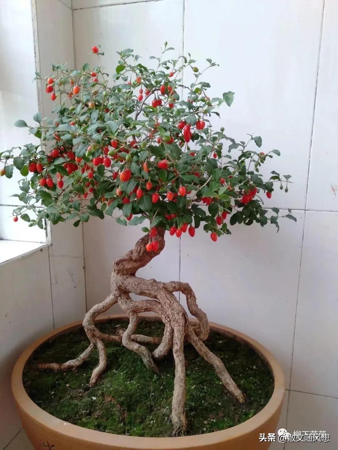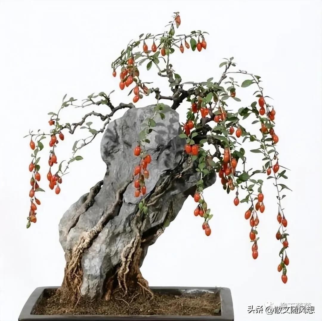 枸杞盆景不仅能展现出生机勃勃的自然风貌,还寓意着长寿和健康,是结合传统文化与自然美学的理想选择。