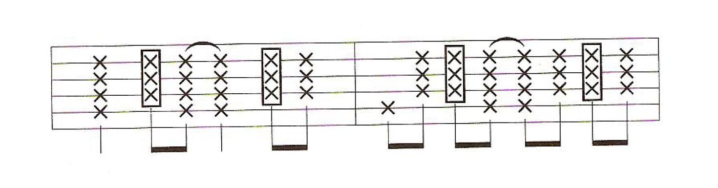在乐谱中使用框框来表示此种技巧。