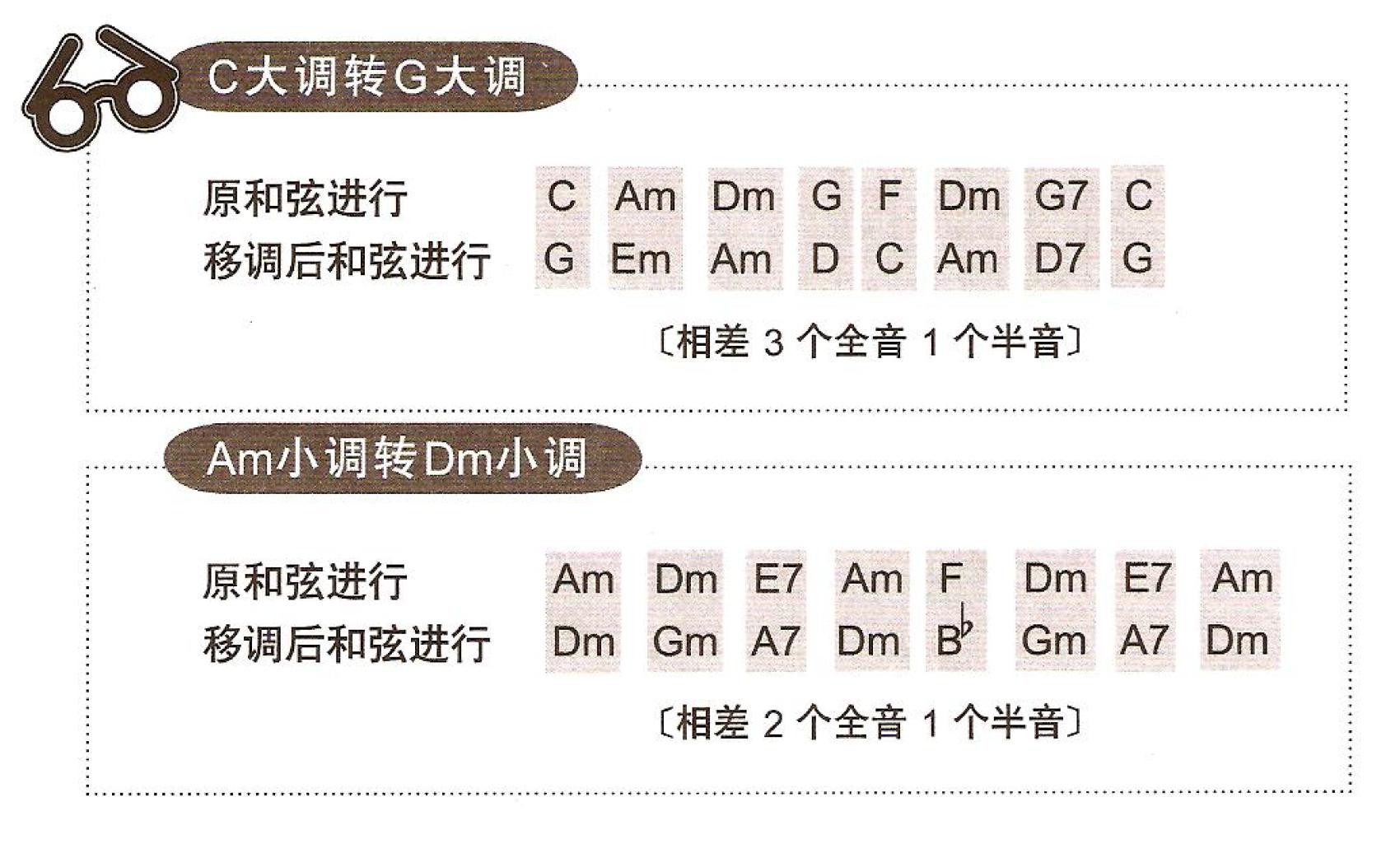3.将各和弦依照相差的音程移动成新的和弦。