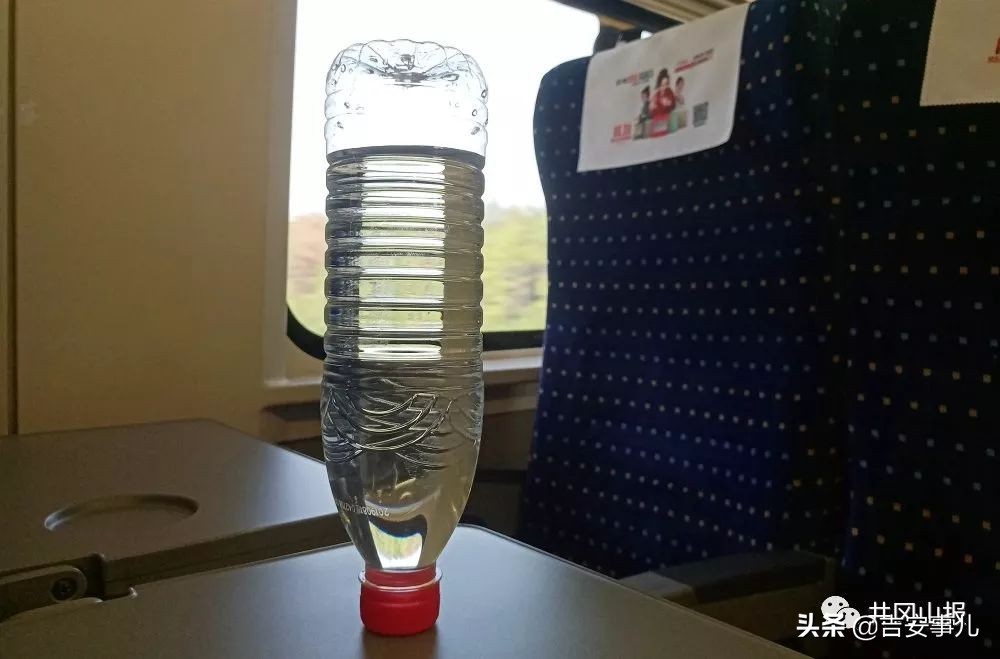 ▲列车平稳运行,矿泉水瓶可以倒立。