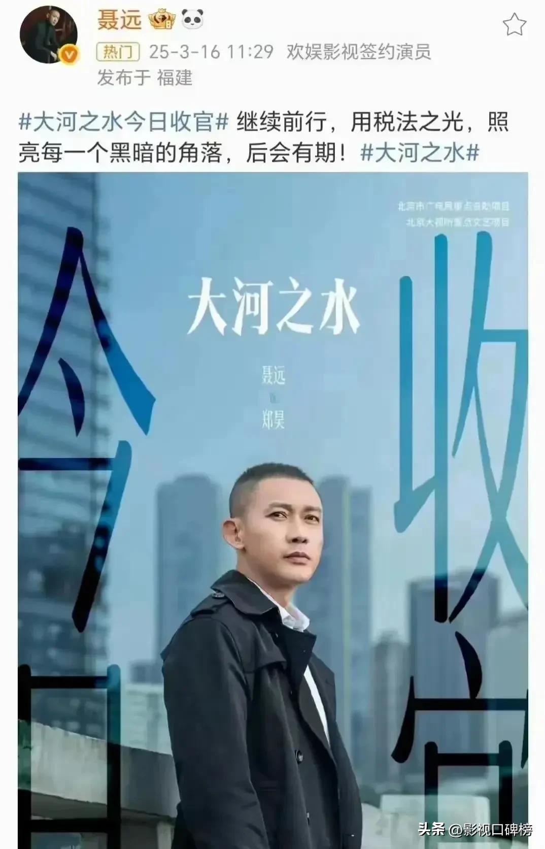 聂远出演的《大河之水》也大结局了,在剧中,他饰演税务稽查郑昊。