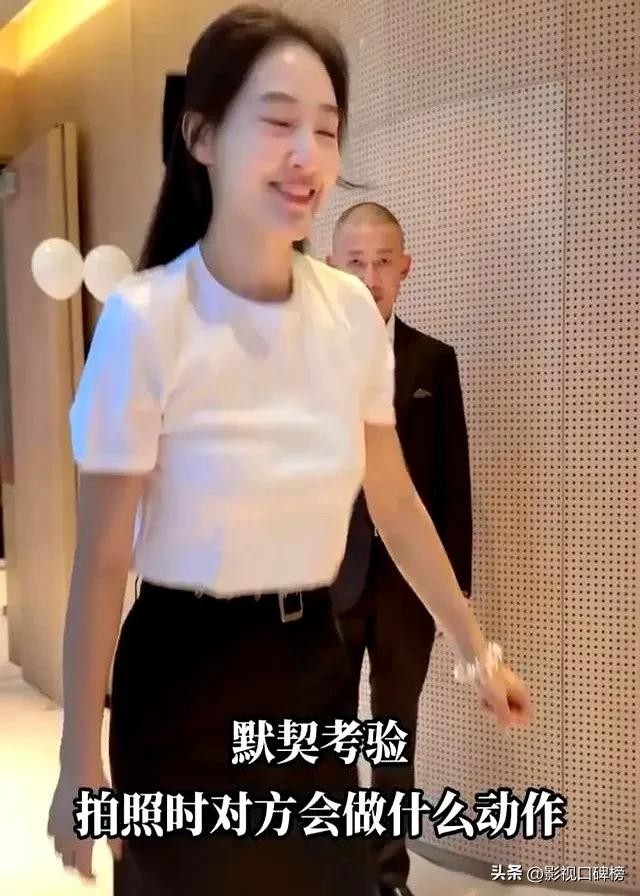 有意思的是,聂远夫妻俩对着镜头进行默契考验,拍照时对方会做什么动作。聂远做了一个双手在头顶上的大爱心,秦子越将一条腿翘起摆出兔子耳朵手势,俏皮又可爱。检验夫妻间的默契程度,他们眼神充满着对对方的爱意。