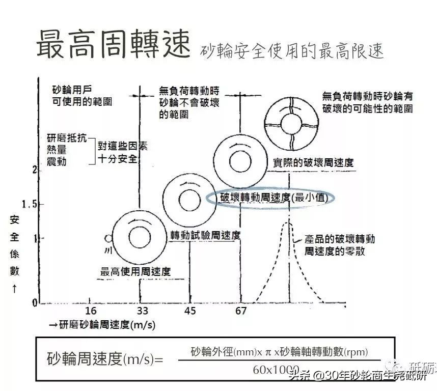 砂轮周速度(m/s)=砂轮外径(mm)x π x砂轮轴转动数(rpm)÷60x1000